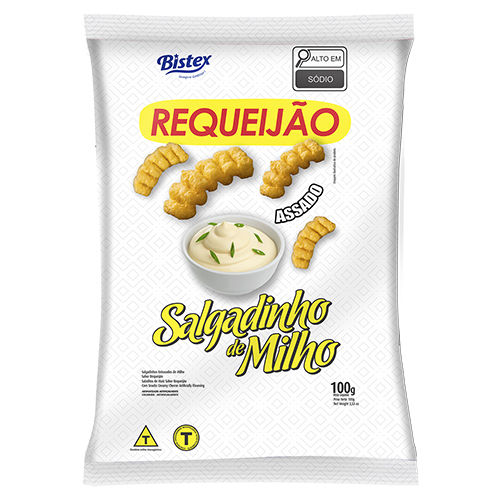 INGREDIENTES: Farinha de milho fortificada com ferro e ácido fólico, óleo vegetal, aromatizante e sal. ALÉRGICOS: CONTÉM TRIGO E DERIVADOS DE SOJA E PODE CONTER OVO, AMENDOIM, LEITE, AMÊNDOA, AVELÃ, CASTANHA-DE-CAJU, CASTANHA-DO-PARÁ, MACADÂMIA, NOZES, PECÃ, PISTACHE, PINOLI E CATANHAS. EVITE UMIDADE E LUZ SOLAR. Produto naturalmente sem glúten e produzido em local onde são processados alimentos com glúten. CONTÉM GLÚTEN.